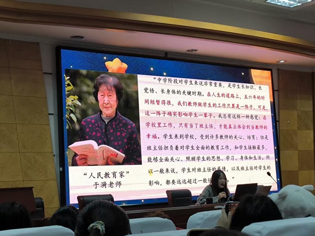 11月25日晚,外国语学院特邀邵阳市第七中学优秀班主任刘诗敏、朱莉沙两位老师,开展初中班主任工作经验分享讲座。学院 2023 级英语专业全体学生参会,外国语学院副院长蒋芬主持本次讲座。