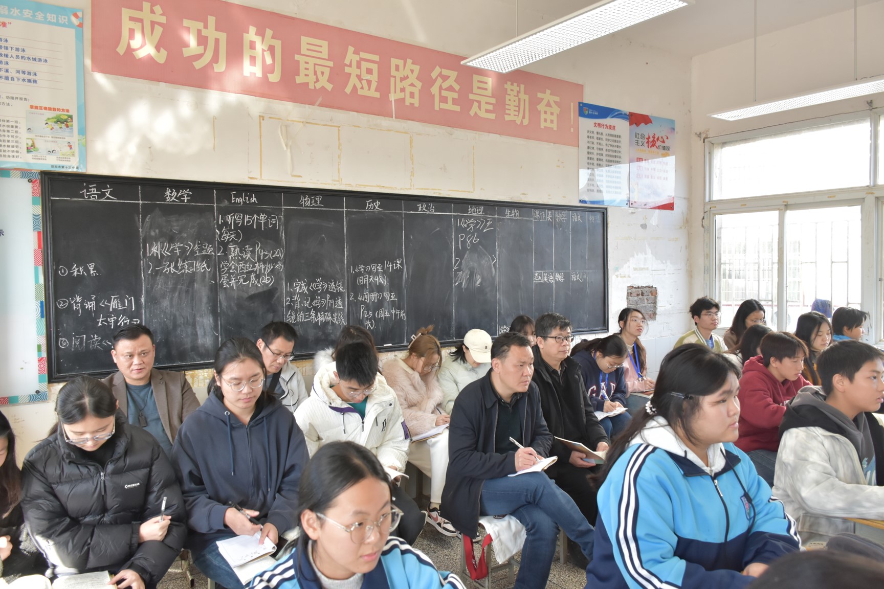 为深入了解师范类专业实习生的一线教学实习情况,共同加强校方与实习基地的合作育人机制,11月19日至26日,教育处副处长周睿率领教学质控科李辉、语委办袁晓兰实地检查文学院22级师范类专业教育实习的实习进展,文学院党总支书记黄建军、副院长袁龙、教务秘书彭国以及实习学校教研组组长、班主任、相关教师等陪同检查。
