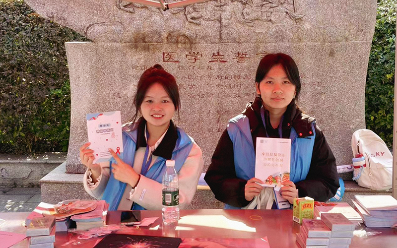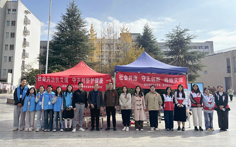 12月1日是第38个“世界艾滋病日”,校医院联合该校医学科普协会、红十字会,围绕“社会共治,终结艾滋,共享健康”主题,在梅子井宣誓碑、溢香食堂、留香食堂等多个地点同步开展了艾滋病防控宣传活动,旨在向青年学生普及科学知识,倡导健康行为与消除歧视。
