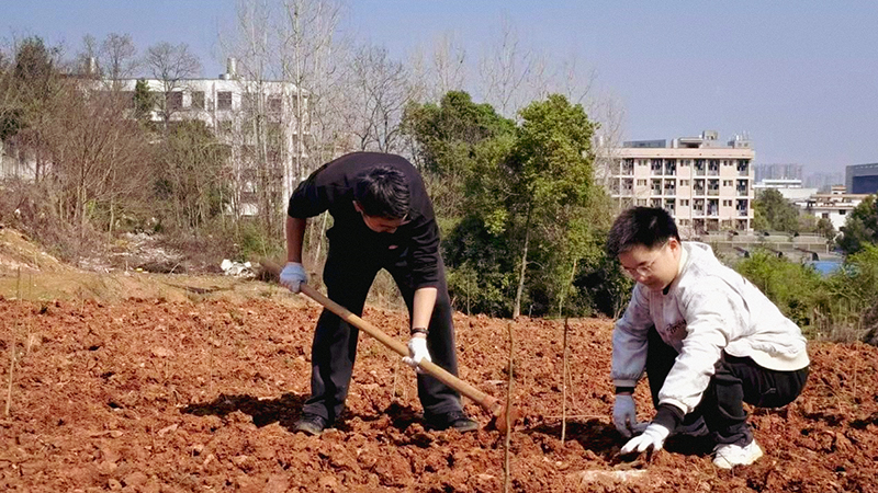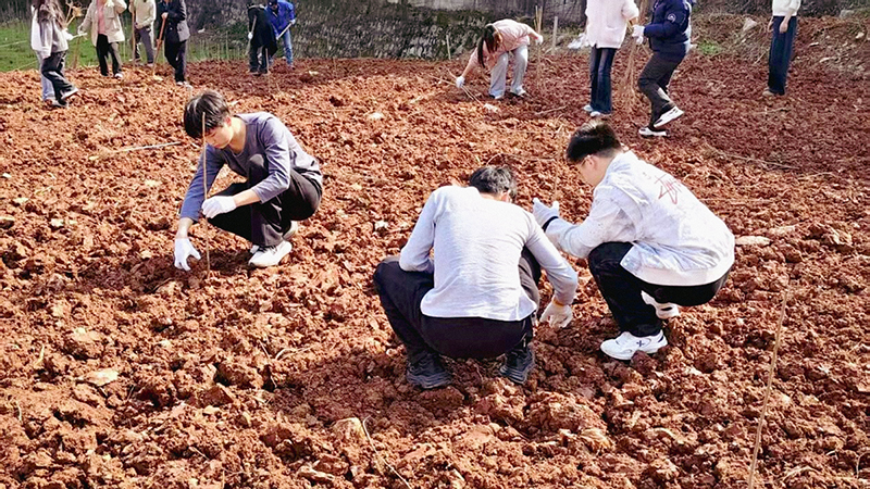 活动现场,同学们分工协作、有序投入,依次完成翻地整地、土壤改良、月季与杜仲苗木定植、菊花盆栽培育等工作,全程规范落实苗木种植、后期水肥管理等全流程农事任务,将课本理论切实转化为实际操作技能。