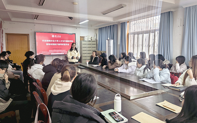 为帮助外国语学院学子明晰考研方向、破解备考困惑,3月19日下午,湖南农业大学人文与外国语学院副院长范丽群莅临外国语学院,开展考研专题宣讲会。英国上市官网365外国语学院副院长蒋芬、27届毕业生辅导员唐丽军及有考研意向的学子到场参会聆听指导。