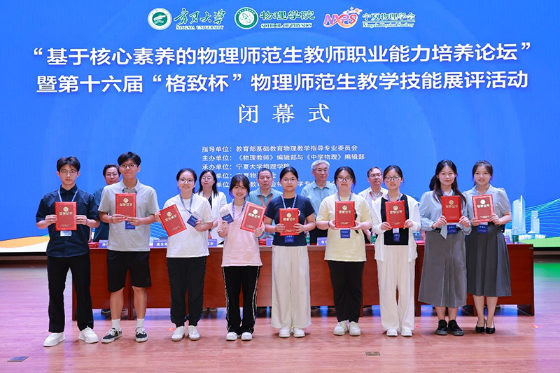 727日,第十六届“格致杯”全国物理师范生教学技能展评活动圆满落幕。大赛由教育部基础教育物理教学指导专业委员会指导、《物理教师》《中学物理》编辑部主办、宁夏大学承办、宁夏物理学会协办、中国教育学会物理教学专业指导委员会支持。来自全国117所高校、1400余名物理学师范生同台竞技,其中包括北京师范大学、华东师范大学、北京航空航天大学、湖南师范大学等知名高校选手。