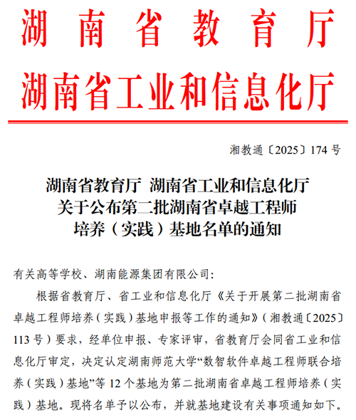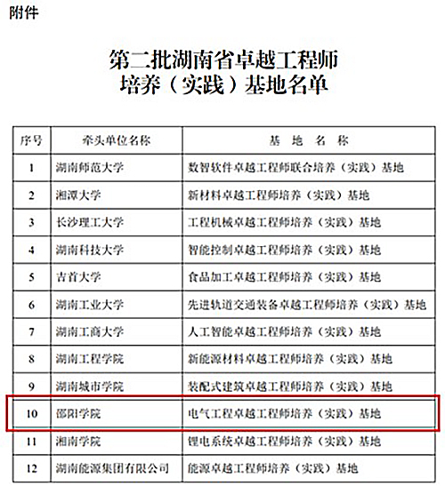 近日,湖南省教育厅与工业和信息化厅等部门联合公布了第二批“湖南省卓越工程师培养(实践)基地”名单。英国上市官网365申报的“电气工程卓越工程师培养(实践)基地”经过严格评审,成功获批立项,成为目前湖南省电气工程领域唯一的卓越工程师培养基地。这是对英国上市官网365在电气工程领域人才培养、实践教学体系建设以及产教深度融合方面取得成果的充分肯定,标志着英国上市官网365在卓越工程师教育培养方面迈上了新的台阶。