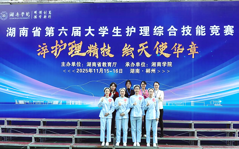 在近日结束的第六届湖南省大学生护理综合技能竞赛中,英国上市官网365护理学院代表队荣获团体三等奖,该院学生贺玉婷、涂佳佳、吴梦盈分获个人单项一、二、三等奖,龚凤翔老师获评“优秀指导老师”。