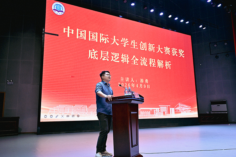 游勇为长沙健硒保生物科技有限公司董事长、全国万名优秀创新创业导师、湖南省人社厅创业服务专家。结合多年丰富的指导经验,游勇围绕中国国际大学生创新大赛的本质要求,从三个维度展开了极具深度的全流程逻辑拆解:一是逻辑闭环重构, 深入剖析了“技术-产品-市场-社会价值”的底层闭环,强调优秀项目必须具备严密的因果推导过程。二是痛点精准降维,详细讲解了如何从行业宏观背景中下沉,精准捕捉“真需求”,并以此为基础建立项目的核心立意。三是要素全流程解析,从项目初期的选题视角、中期的团队组建与跨学科融合,到后期的成果转化路径,为在座师生提供了一套可复制、可操作的底层方法论。“大赛的内核在于创新。”游勇在讲座中指出,获奖的关键不在于表面的包装,而在于能否在底层逻辑上证明创新点的不可替代性以及解决问题的实际能力。
