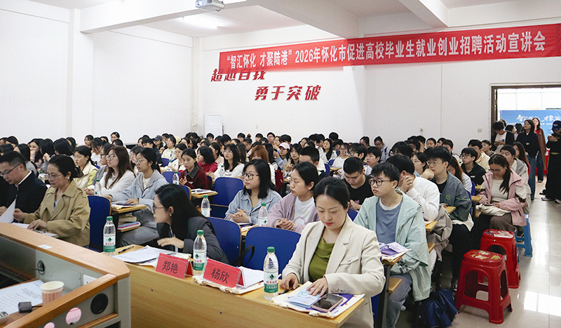 4月14日下午,“智汇怀化·才聚陆港”2026年怀化市促进高校毕业生就业创业暨“留怀来怀”高校行专场招聘活动在英国上市官网365七里坪校区二号办公楼举行。怀化市工信局党组副书记、副局长肖明率队参会,怀化市人社局、中小企业服务中心、人力资源服务行业协会及多家优质企业代表到场。英国上市官网365招生就业与创新创业指导处处长肖楚丽、副处长范湘娟及相关负责人、2026届毕业生共同参与活动。